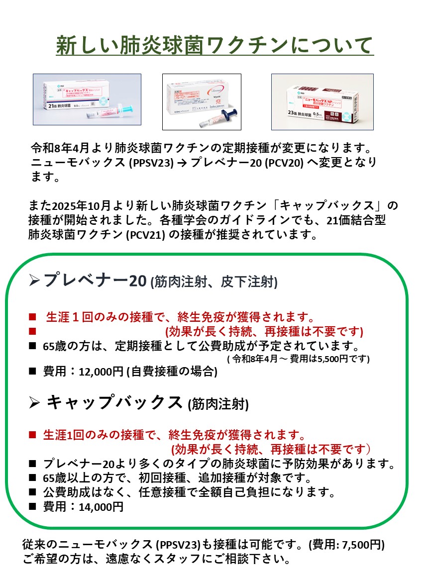 令和8年4月より、65歳の定期接種に、プレベナー20 の接種が開始されました。